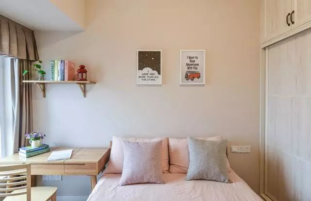 主卧是完全的muji风格,把飘窗打了刚好可以放下一张梳妆台。床品是买的无印良品的,重点介绍一下梳妆台,网上买的,然后自己安装,虽然很简单,就是把几个腿用螺丝固定起就行了。但是,悲催的遇到了有只腿长度不一致,然后就是晃的,联系卖家后,又给我寄了四个腿,但就只能每个腿的试,拆了又卸的搞了无数遍,那个是实木的呀,女汉子也都被虐死了。