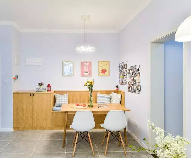 餐厅卡座的设计既节约空间,又可以储物。做点精致的食物,和朋友一起吃饭、聊天、喝酒,便是最好的时光。