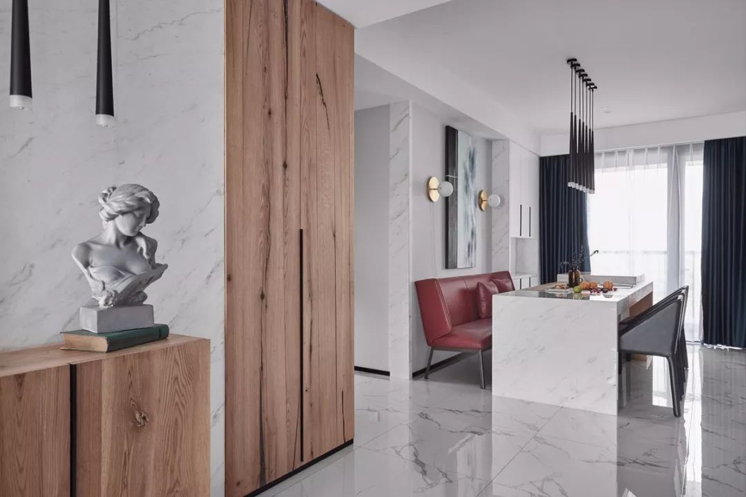 大理石、黄铜元素、丝绒、皮饰、瓷砖乃至木饰面等,都可以经过巧妙的混搭与组合,让空间的奢华感上升到一个新的高度,打造出深受年轻人喜爱的现代家居。