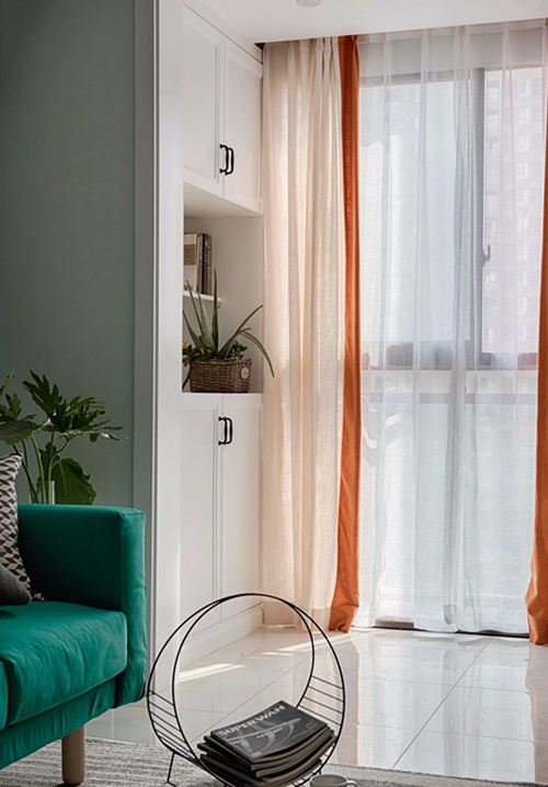 7 、 小空间纳入阳台,扩展实用面积,木质储物展示柜,增加公领域收纳空间