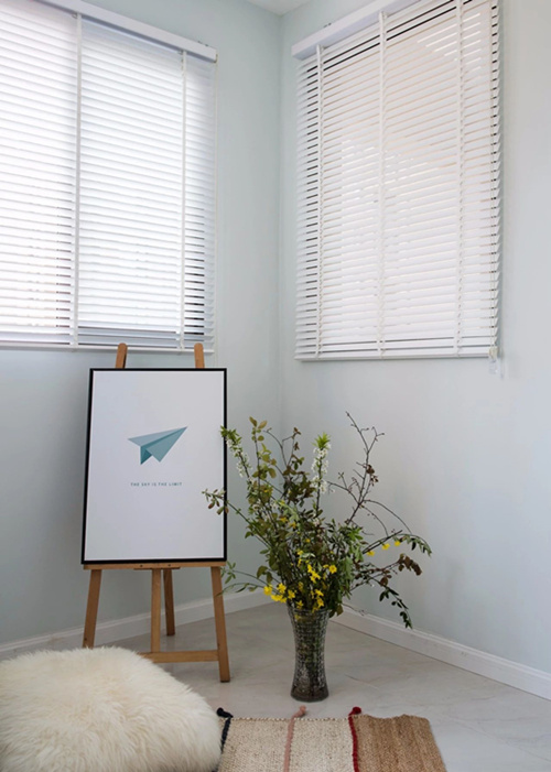 10 、 次卧延续清浅墙面漆,搭配白色百叶帘,给人一种舒适的视觉感
