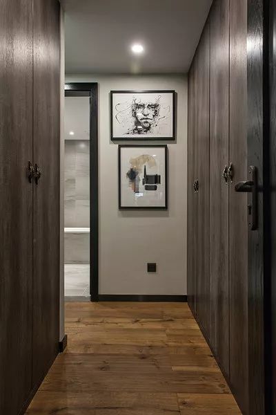 走廊两侧都是收纳柜,在尽头墙面挂上2幅装饰画,个性张扬而又实用大方;