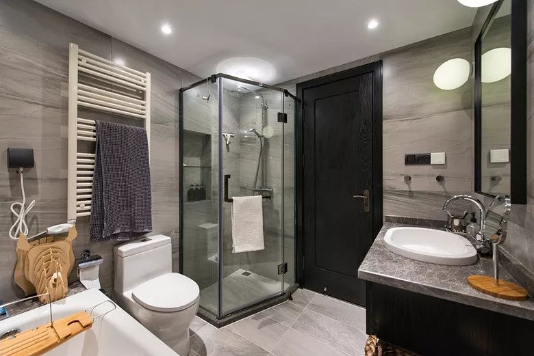 主卫面积比较宽松,在淋浴房的基础还装了个大浴缸,满足主人在忙碌之余的放松时光;