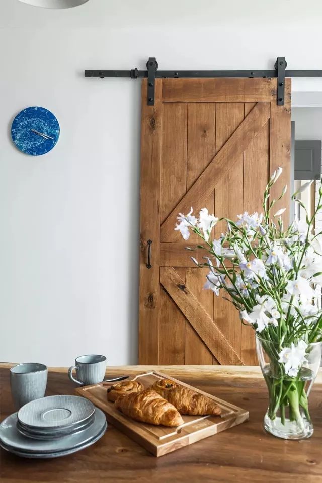 谷仓门的使用,节约了使用空间,也别有韵味成为屋里一道显著风景。
