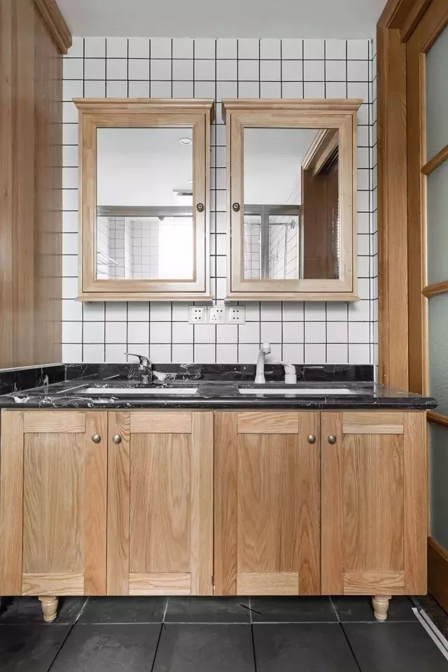 主卫选择了双浴室柜和双镜柜,这样男主人和女主人的物品可以更好的划分使用,增强整理功能,由于两人爱好不同,所以根据喜好选择了不同的龙头。