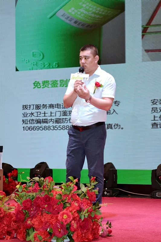 会议中此次世丰管道销售总监温总也来到会议现场,给在场的水电工程师及嘉宾们介绍了世丰的产品特点和对线下的扶持政策。