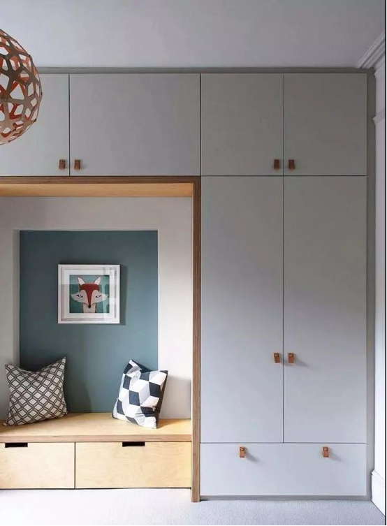 嵌入式壁柜是节省空间的利器,它的外观简约大气,内部收纳空间也很充足,你可以设计成
