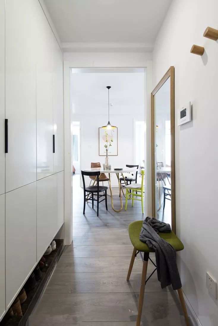 其实鞋柜的款式多种多样,你可以按照自己喜欢的样子来定制,但不管是什么样的鞋柜最好都要具备这两种特质:底部悬空+换鞋凳。