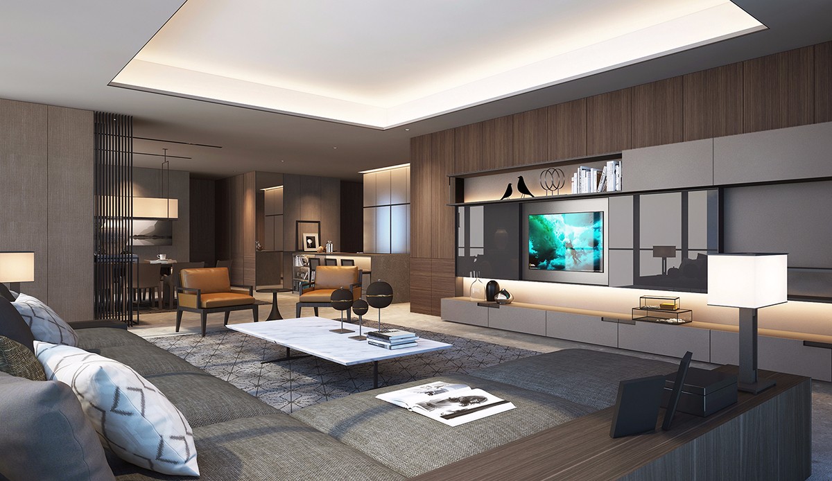 客厅吊顶的高度距离地面尽量留高,否则给人一种压抑的感觉,小编自己就很不喜欢那种压抑的感觉。