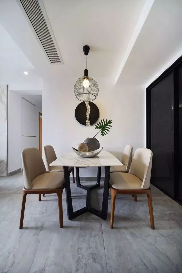 大理石台面的餐桌搭配有金属质感的餐盘,再点缀些许绿植,自然灵动,还原生活本色。