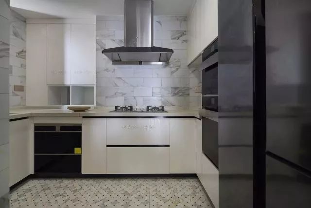 厨房空间格局特殊,经设计优化后就特别实用了。壁砖和小方块地砖,简单低调却不乏细节感,让做饭也成为一种享受。