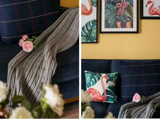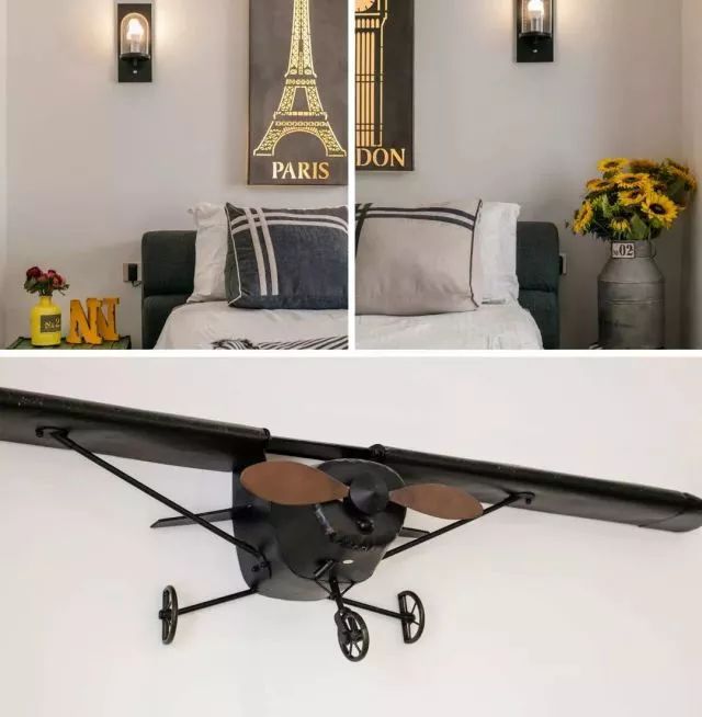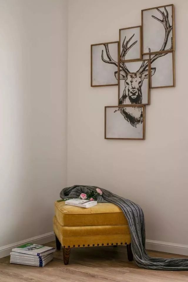 简单的生活方式,一个软布书凳,一套百看不厌的书,一个看是拼凑实际完整的鹿头挂件足以表达了他们的不将就以及不随意搭配的生活哲学。