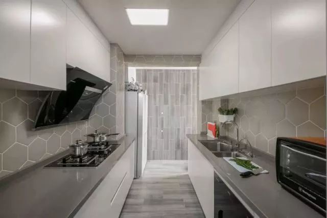 灰白色的格调,淡雅而不失俊酷的搭配,整个厨房空间干净、整洁。