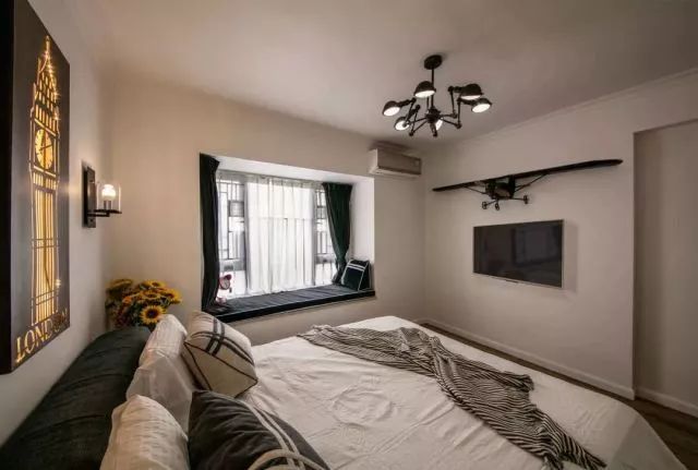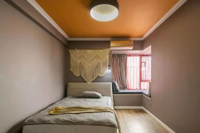 流苏虽然是一种中国古典装饰,在这里流苏的巧妙运用(它遮挡住了空调暴露的铜管以及电线插头)它的出现也给本来块面的空间带来了一丝流动般的顺滑与惬意。
