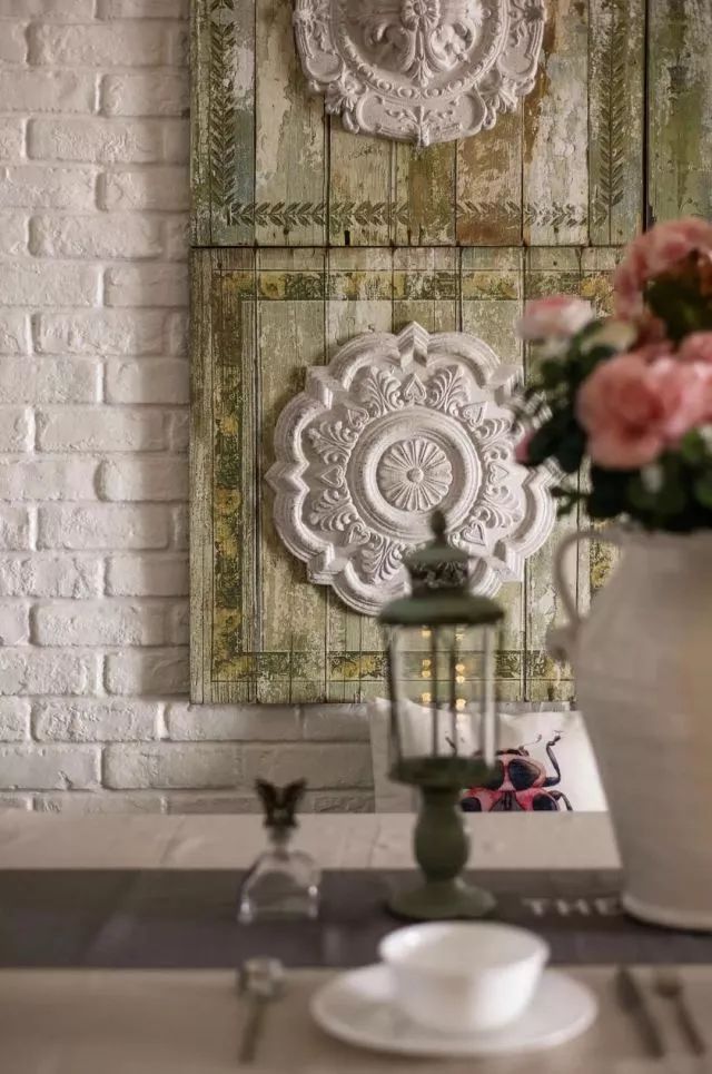 餐桌条凳上面的靠背挂件,这几个浅绿色底白色圆形的挂件像极了盐湖里一个个被太阳灼晒、挤压后形成的一个一个搁浅在这里的盐岛,这就是火烈鸟们最喜欢的栖息地之一。