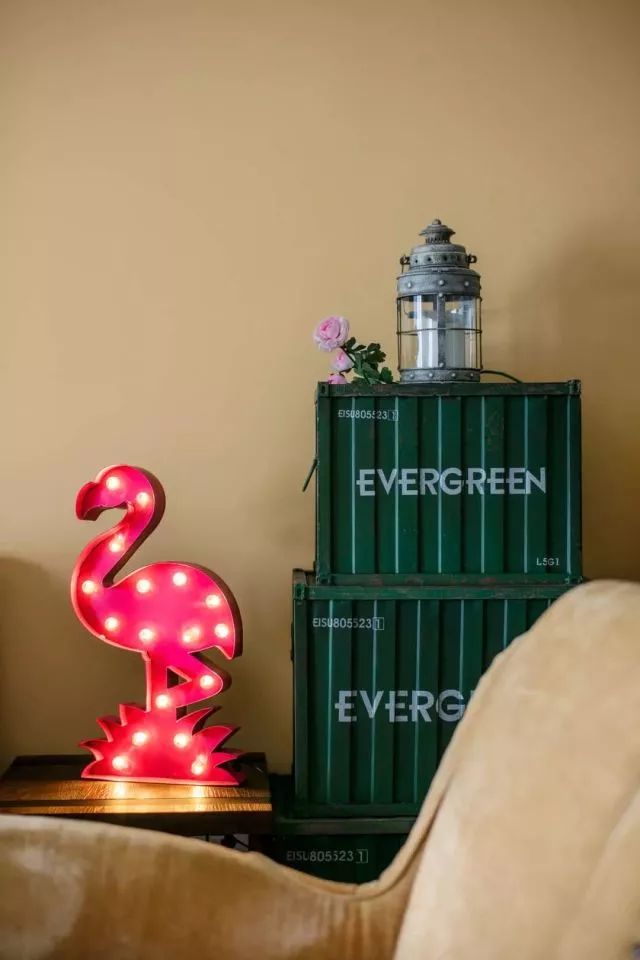 白色的背景墙犹如纳特龙湖的盐层与盐层相互挤压而成的天然画面,火红的火烈鸟就要在这里安家。