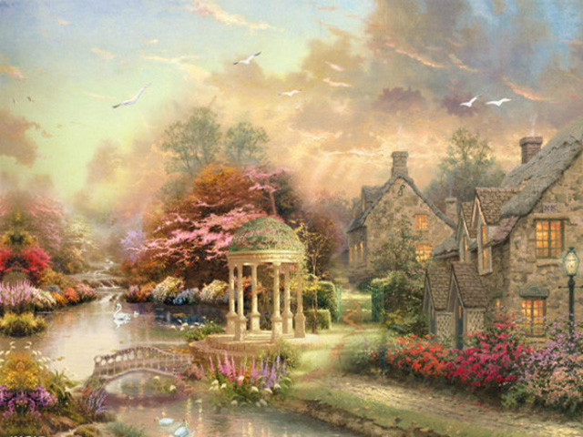三、田园风格:田园风格又有欧式田园和中式田园之分,欧式田园通常以欧式乡村风格为主,也是自然风格的一种,在室内装饰中力求表现悠闲、舒畅、自然的田园生活情趣。了解欧美文化的人都知道,他们所表现出的田园通常是一望无际的大草原和湛蓝的天空与白云。所以欧式田园风格装饰画又是以此内容居多。