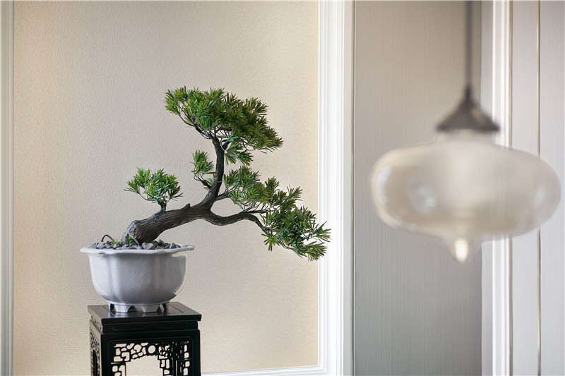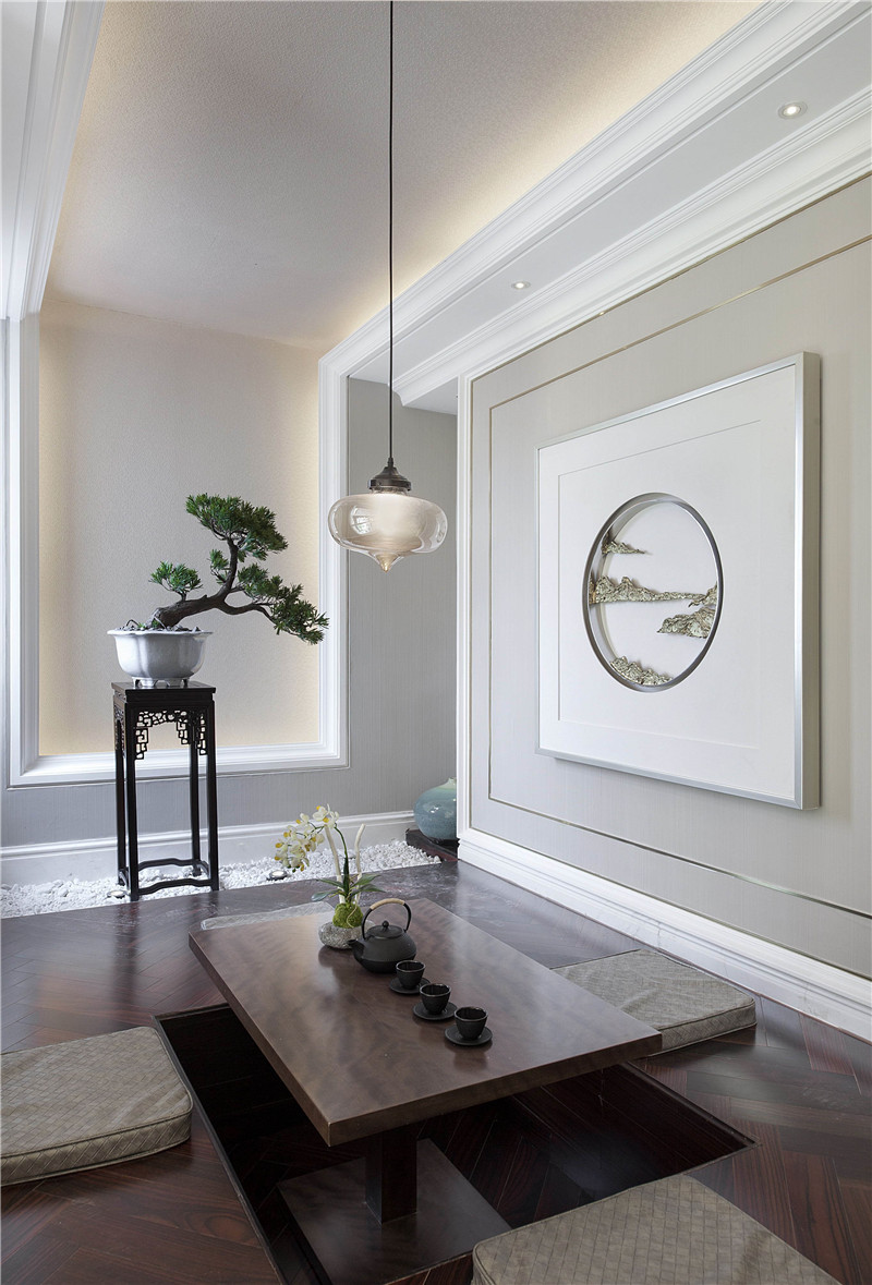 贵阳乐湾国际别墅:室内中以洗练纯净的白、高贵优雅的灰色为主色调,配以清新的绿色平衡。适量的香槟金箔,铜质灯饰塑造空间气质。在茶室中这个富有蝉翼的独立空间中,体现业主个性品味。 by何永明