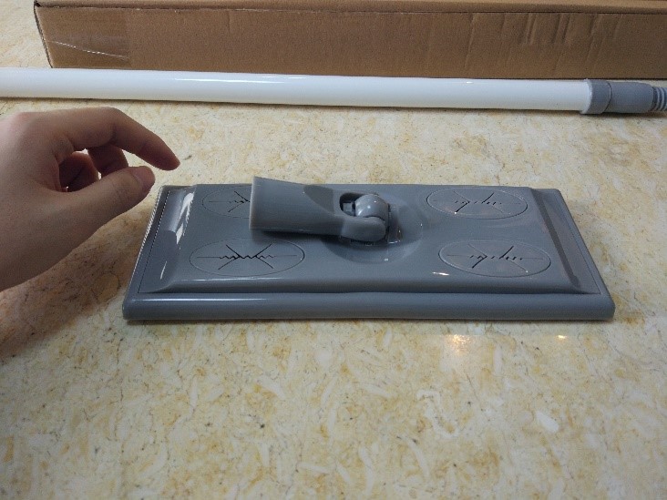 打开后是酱紫,设计有点日系的感觉,主要由一个拖把杆、拖把头、还有静电纸构成