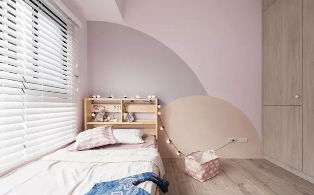 ▲另一间小孩房则是走更加温润的色调,搭配粉红、紫色作点缀与平衡,融入些许少女情怀,就是小女孩充满想像的乐园了。