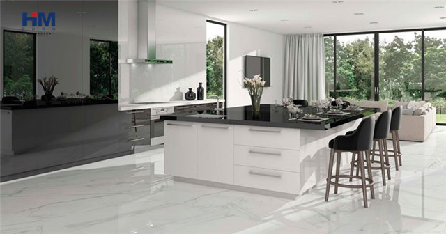 厨房铺贴相对于前几种用法,大规格瓷砖对于厨房的意义来得更加实际,我们知道厨房是家中最容易藏污纳垢的地方,大规格瓷砖留缝少易清洁打理的特点成了厨房铺贴的绝佳选择。