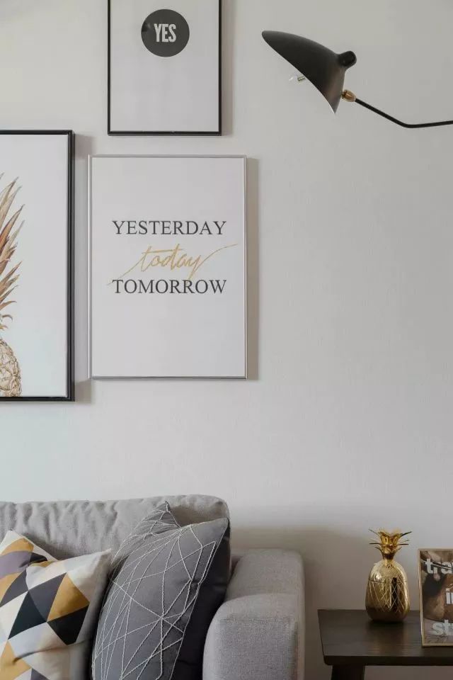 昨天今天明天,既是装饰墙面的饰品,也是主人所表达的人生格言:昨天已是过去,而明天是未知的,只有今天才是当下,用不同的字体突出珍惜今天,活在当下。