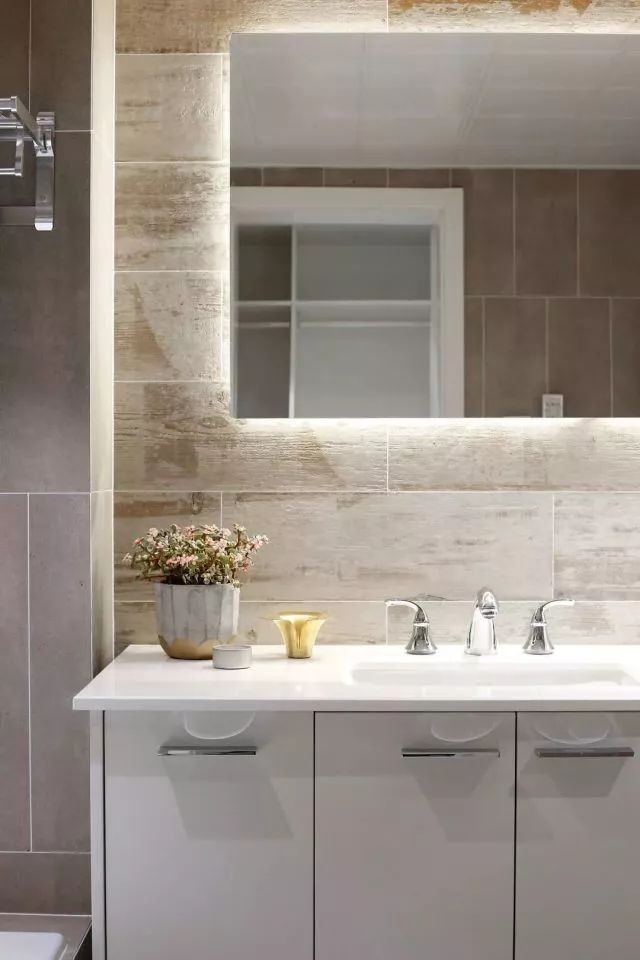 主卧的卫生间做了干湿分离,用暖色调缓和整体比较冷淡的风格。