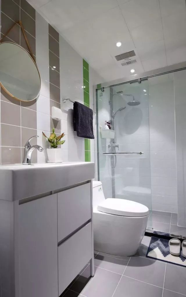 次卫以简约白色调为主。但是浴室柜有点偏高了。以后可能不方便小主人使用。
