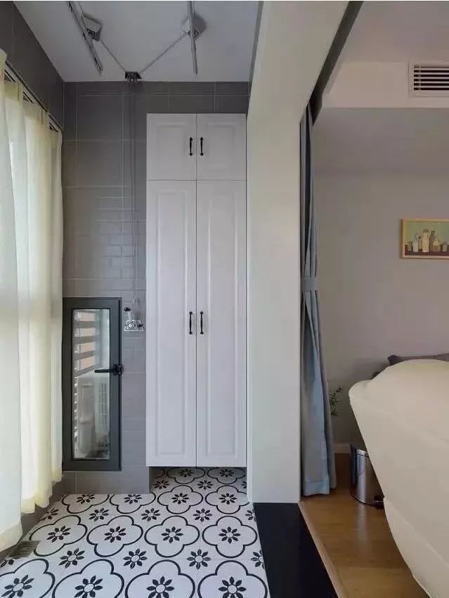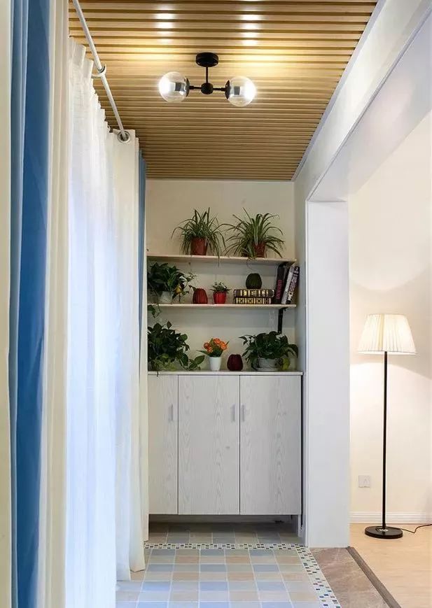 毕竟高度低了一些,你完全可以用这个阳台打造一个衣帽间,加上一面镜子、一部分的衣柜、鞋柜就好了。