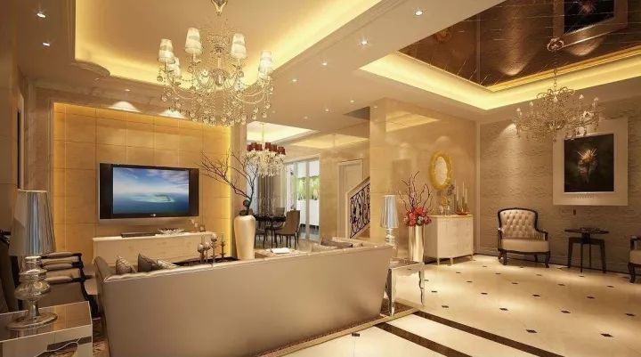 客厅:客厅作为待客区域,一般是简洁、明快、光鲜,通常你会看到大量的石材和饰面装饰元素;而在美式装修风格中,美国人更多的融入了历史感的东西,这不仅反映在软装,摆件上对仿古艺术品的喜爱,同时也反映在装修上对各种仿古墙地砖、石材的偏爱和对各种仿旧工艺的追求上。