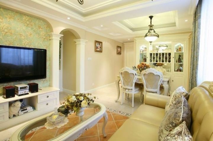 新古典风格是通过古典风格改良而来的,高雅而和谐是新古典风格的代名词。白色、金色、黄色、暗红是欧式风格中常见的主色调,少量白色糅合,使色彩看起来明亮、大方,使整个空间给人以开放、宽容的非凡气度,让人丝毫不显局促。