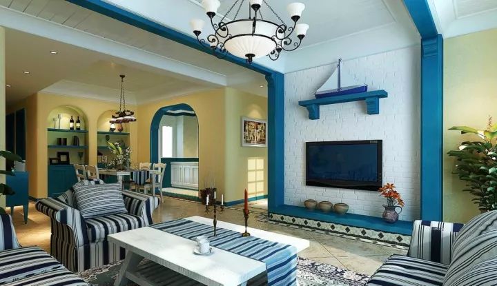 5.独特的装饰方式。在构造了基本空间形态后,地中海风格的装饰手法也有很鲜明的特征。马赛克镶嵌、拼贴在地中海风格中算较为华丽的装饰。主要利用小石子、瓷砖、贝类、玻璃片、玻璃珠等素材,切割后再进行创意组合。在室内,窗帘、桌巾、沙发套、灯罩等均以低彩度色调和棉织品为主。素雅的小细花条纹格子图案是主要风格。此外,独特的锻打铁艺家具,也是地中海风格独特的美学产物。同时,地中海风格的家居还要注意绿化,爬藤类植物是常见的居家植物,小巧可爱的绿色盆栽也常看见。