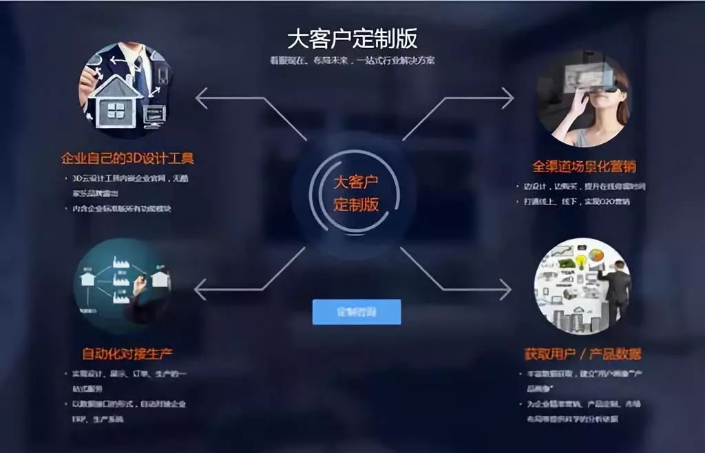 酷家乐致力于打造一个连接全球设计师、家居品牌商、装修公司以及业主的强生态平台,覆盖全国90%的户型库,拥有超400万真实商品3D模型;吸引超300万室内设计师(覆盖全国40%的室内设计师)和超1000万业主用户,形成垄断式的用户壁垒;齐家网与酷家乐为实现合作共赢,酷家乐为齐家网提供大客户定制版,着眼现在,布局未来,一站式行业解决方案!