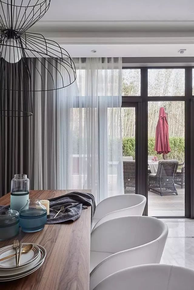 原木色的餐桌凸显出了它独有的质感,搭配白色的餐椅,给人一种“家庭温暖”