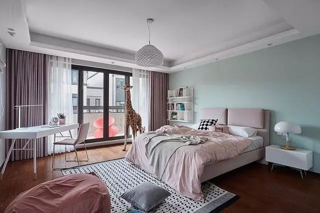书房也是拥有充足的采光,阳光撒入,照在黑白相间的地毯上,温暖而幸福