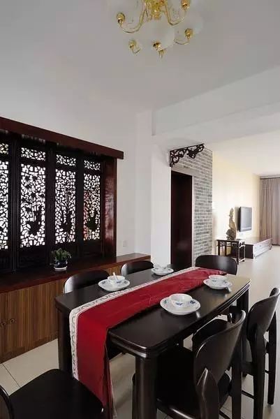 中式风格,在空间的环节上讲究层次,多用隔窗、屏风来分隔出各个空间,用实木做出结实的框架,以固定支架,中间用棂子雕花,做成古朴的图案,给人一种优雅庄重的古朴感。