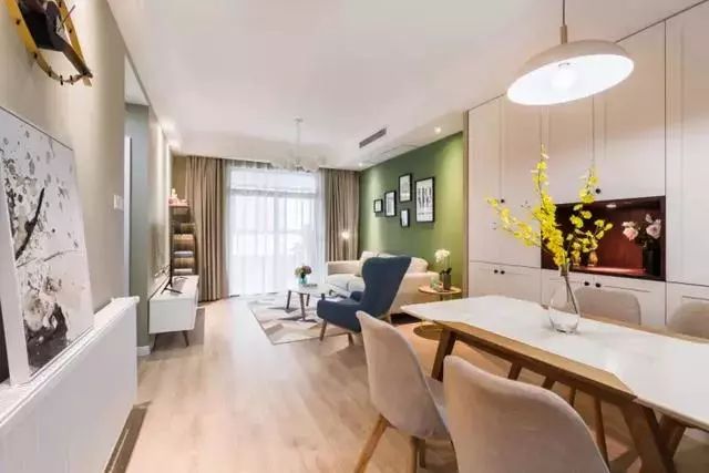 客餐厅位于同一空间,视觉空间非常好,而白色和绿色的搭配也是清爽自然,又特别的亮眼;