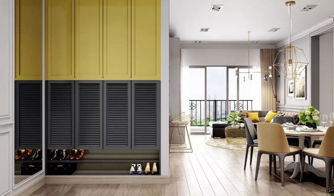 平行式鞋柜受到了很多业主的青睐,因为它比较节省空间,收纳力强大,再加上设计独特又很时髦,可以让整个门厅更显精致。