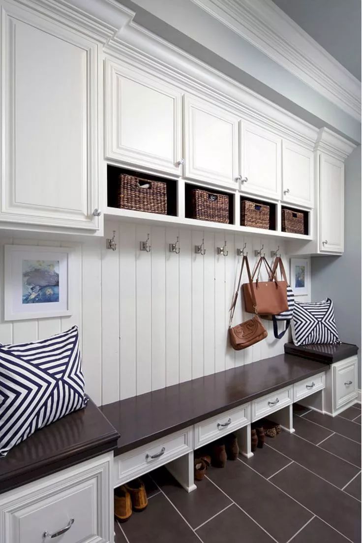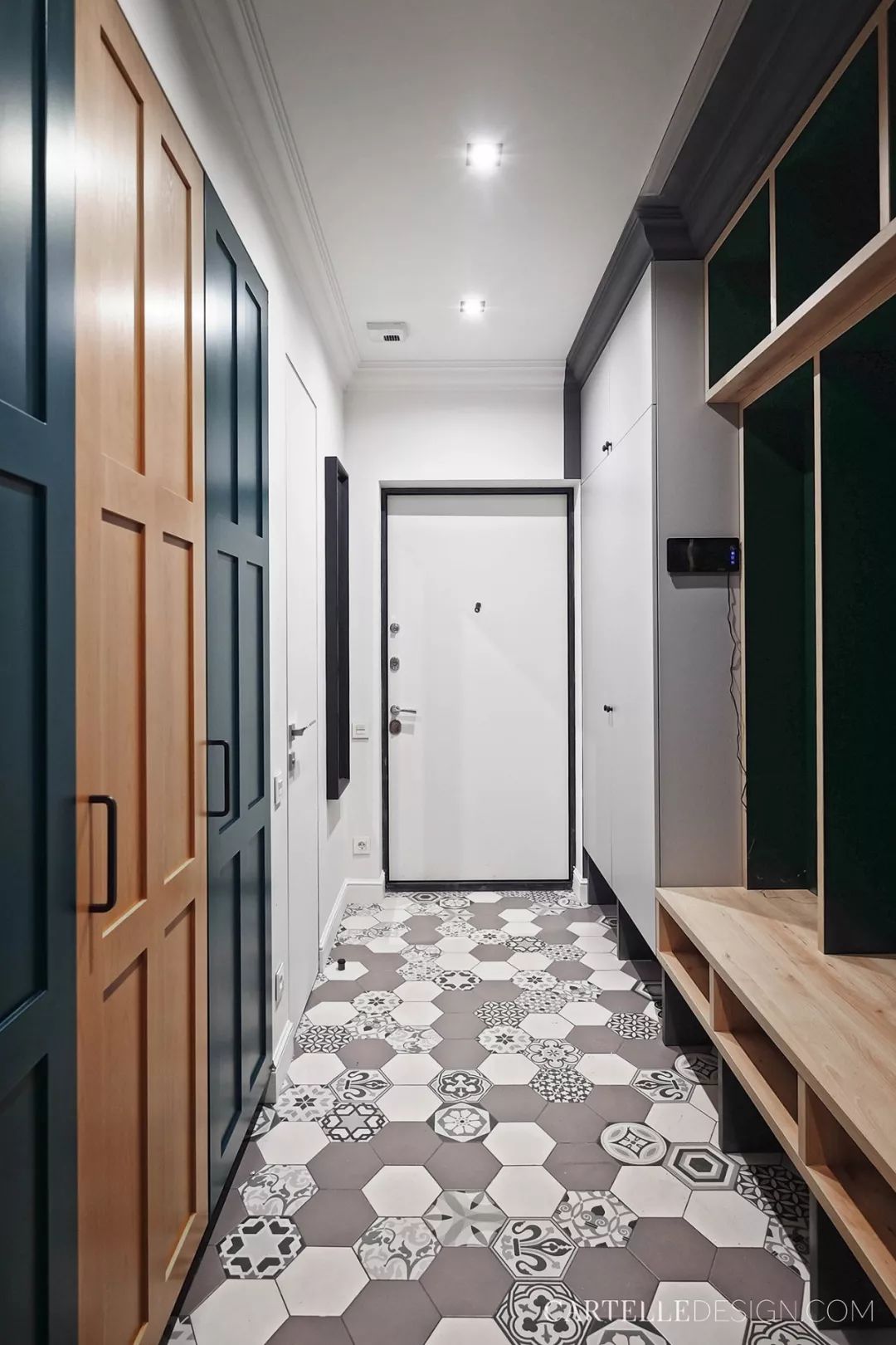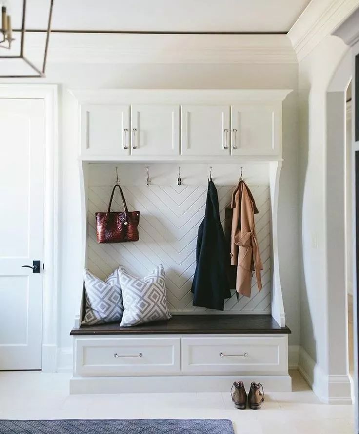 在留空区域安装几个挂钩,外套、帽子、包包等都有了合适的藏身之处,进出门的时候就再也不用跑到别的房间,轻松省事多了。