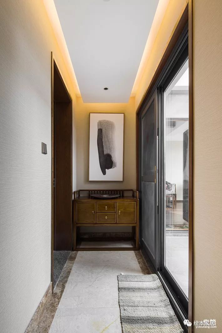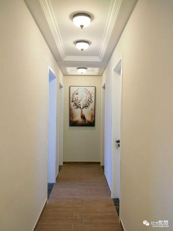 在走廊的尽头放上装饰画或者桌子等饰品装饰,让空间不在那么死板。