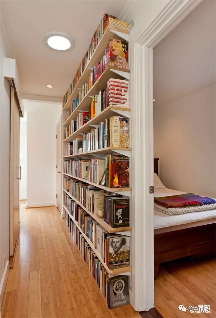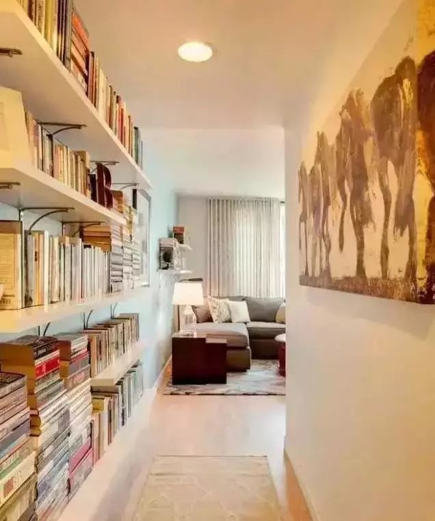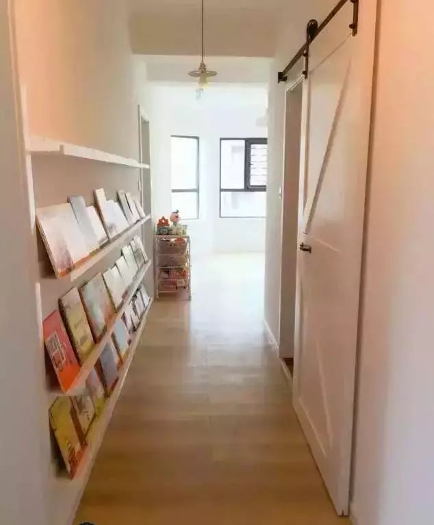 家里没有独立的书房,在走廊做个简单的书架,摆放上自己心爱的书籍,小空间作用的最大化。