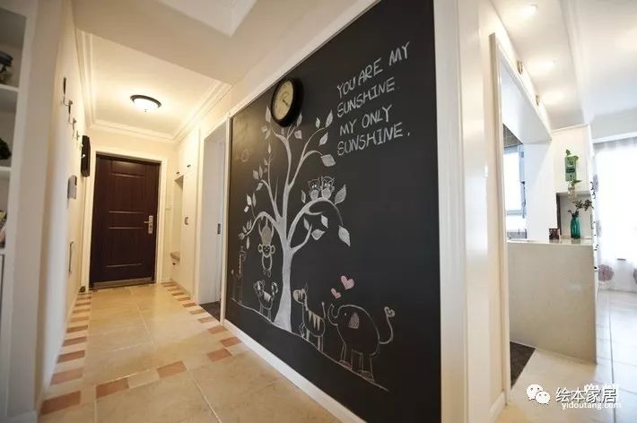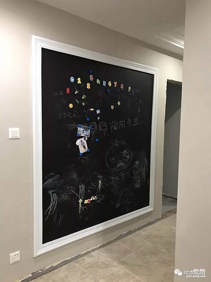 如果家里有宝宝,那么就给他做一面小黑板,写写画画,丰富了孩子的生活,也避免了孩子在别的墙面乱写乱画。