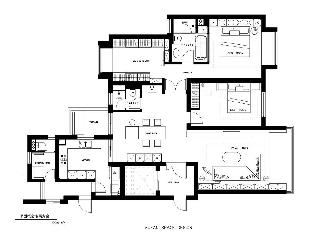 本案为Mr.Z居住的三房公寓的户型,Mr.Z是一位单身事业宅男,对于生活有着自己独特的理解和向往,他希望给家以精致、悠闲的生活气息。细水流长的生活,波澜不惊则是喜,忘怀得失,一任自然。整体公寓的装修遵循了男性的极简主义