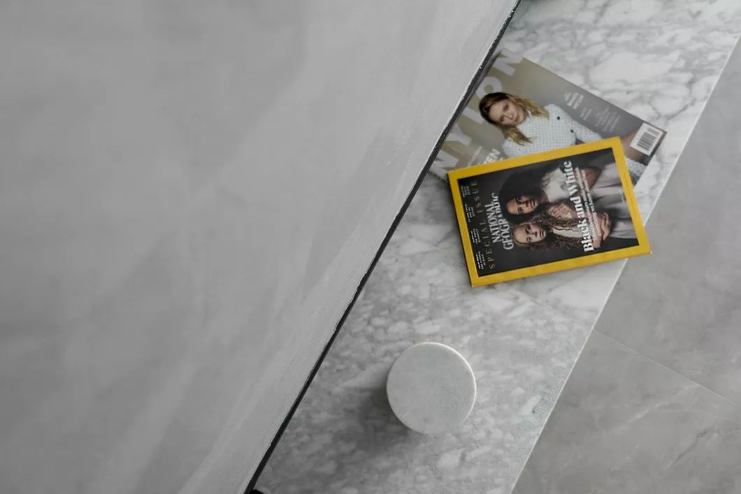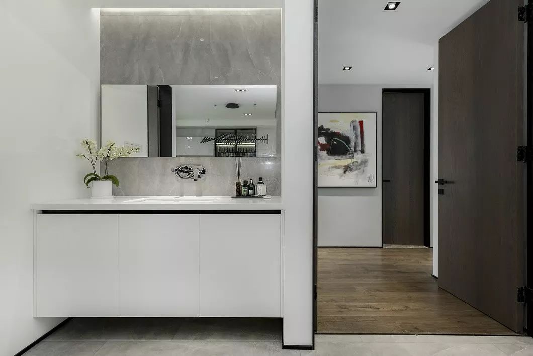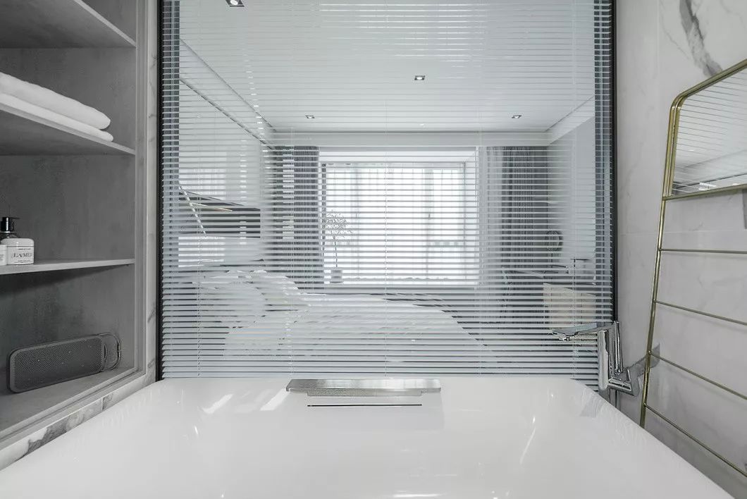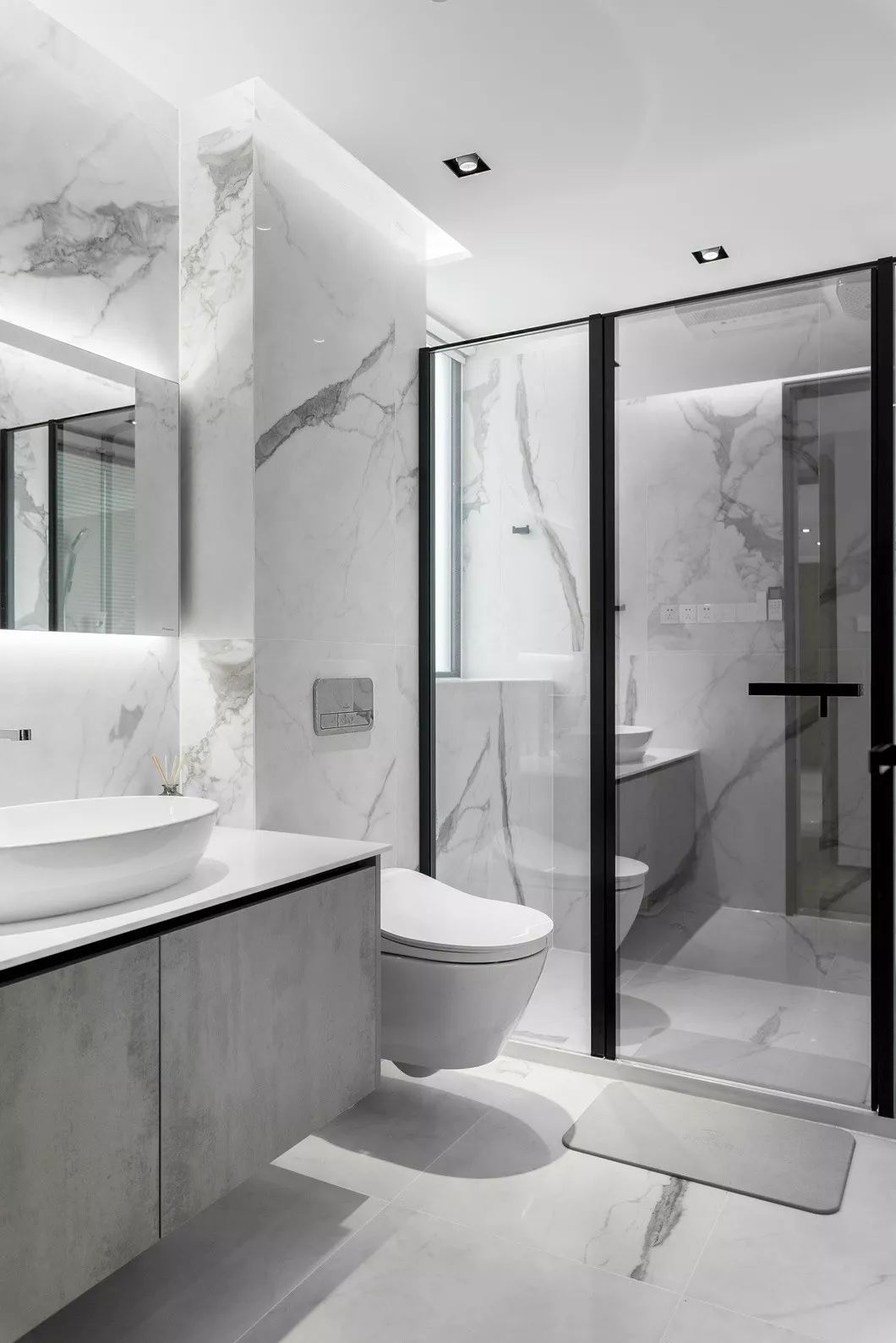卫生间是最显生活品质的地方之一,从瓷砖到洗漱用品的摆放,都是一览无遗,此为设计留白之处,白色仿大理石纹瓷砖,可以说相当的耐看了,很安静,很美好。