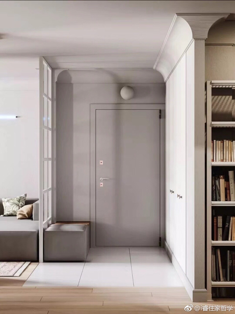淡的粉色让家呈现一种优雅的温馨之感。做了弧行的拱门也让简约的...