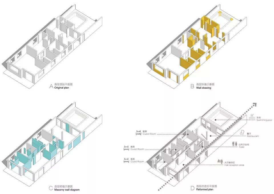 六甲酒店的空间改造的目的就是:重新划分合理的空间;重新组织合理的动线。使改造后的建筑空间成为一个在功能上和视觉上都能引人注目的海边度假酒店。