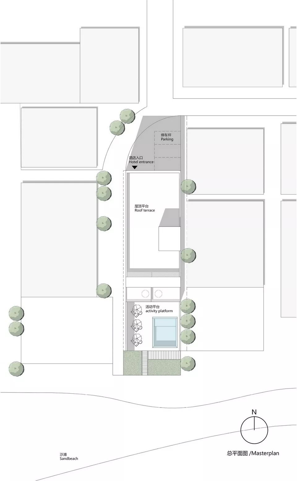 项目名称:三亚·六甲设计酒店地点:海南省三亚市海棠湾后海村总建筑师:李宓材料:马赛克 灰色轻质砖 水曲柳 灰水泥 白色水磨石 黄铜结构:混合结构+钢结构加固建筑面积:740㎡摄影:汪海波