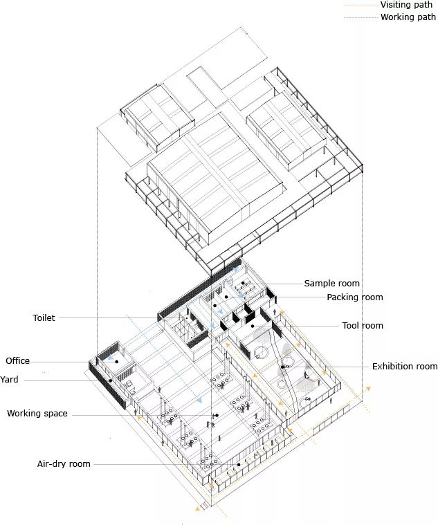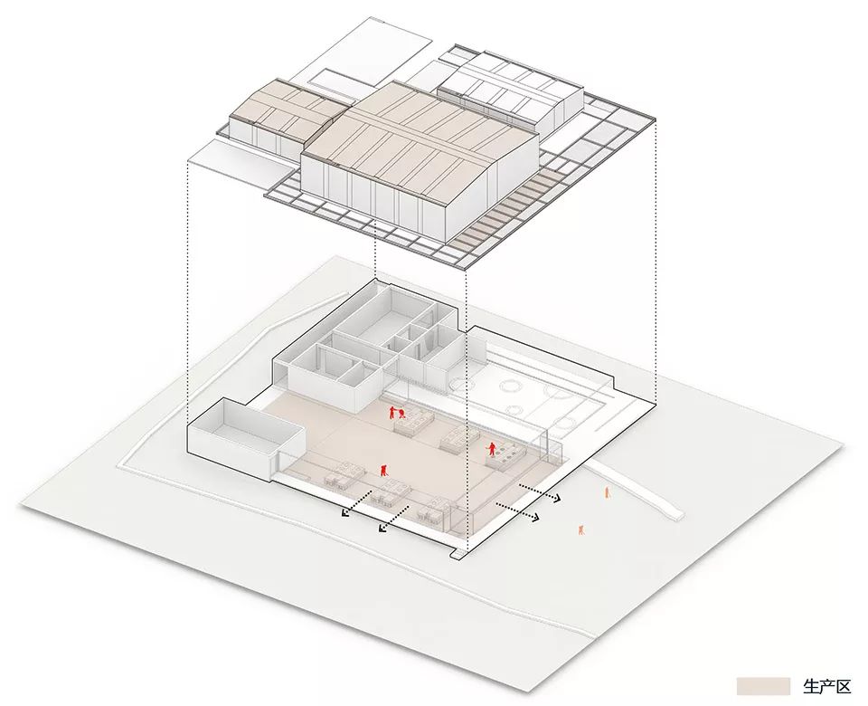 我们相信即使建筑“硬件”不再具备传统风貌,人文“软件”上的丰富生机仍然可以持续给村庄注入活力。这也是本项目中的主要策略。红糖工坊传承了村庄内核的文化传统元素,体现了其内在的文化价值,也展示了兴村不同于其他古村落的独特特征。 兴村红糖工坊兼具红糖生产厂房、村民活动和文化展示,是衔接村庄和田园的一处重要场所。距离村庄一定距离的选址也有效降低生产对村庄的影响和干扰。工坊作为村庄与四周田园间的过渡延伸,村民在生产活动的同时能够欣赏田园风光,并成为村民田间劳作之余休息休憩的场所,外来的游客也可在此停留,体验田园诗意、村庄生活。