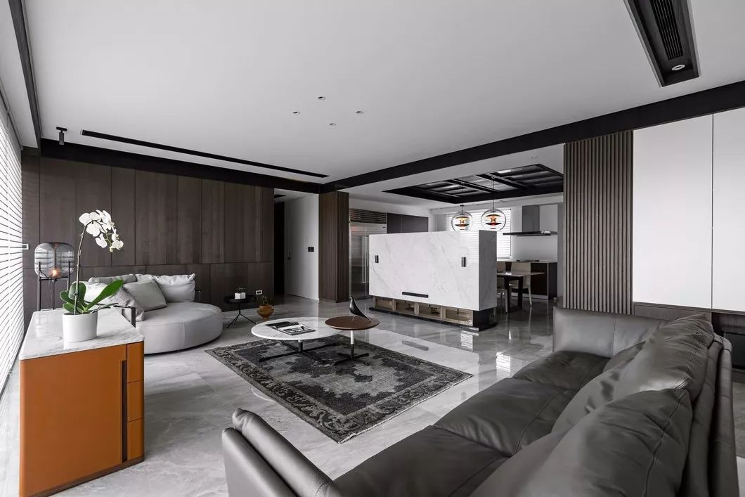 光亮、平整的抛光面可以展现一种低调的奢华,它素雅、冷静、富有格调美,不仅可以中和整个空间过于冷硬的气质,而且展现了人们对沉静自持、舒缓简单的向往。