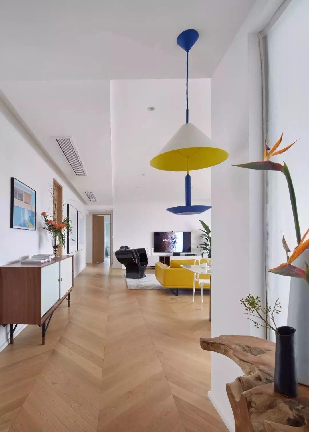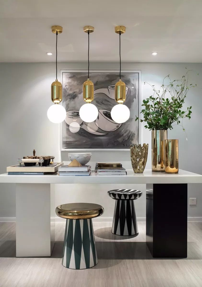 几何元素运用得好,可以使室内呈现出高逼格的视觉冲击。因为它是随性不规则的,给人一种不受束缚的自由感和动感,增加空间亮点的同时,还可以把其他家居元素衬托得更有活力。